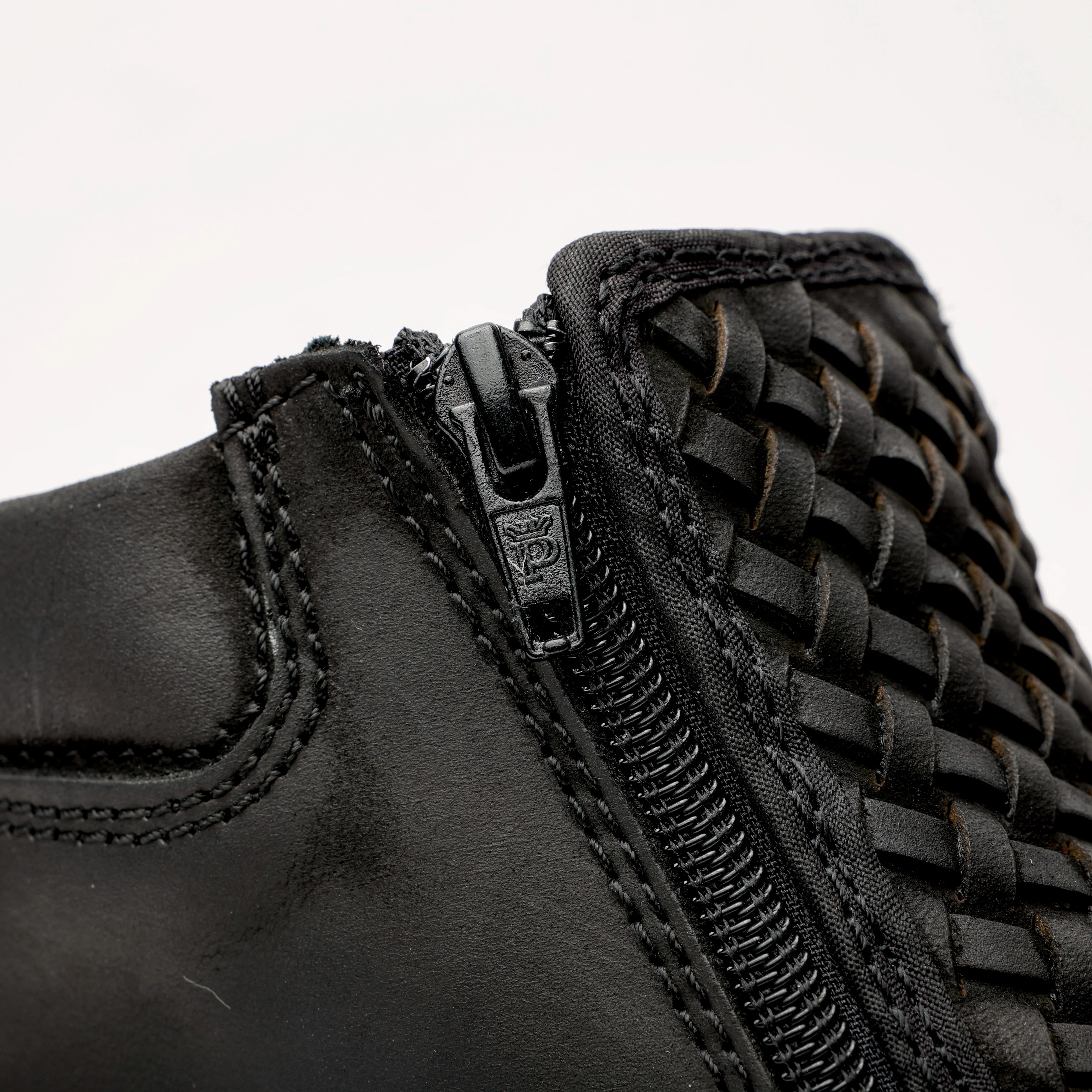 Black Basketweave Leather Botin With 3D Lightweight Soles - Square Toe—