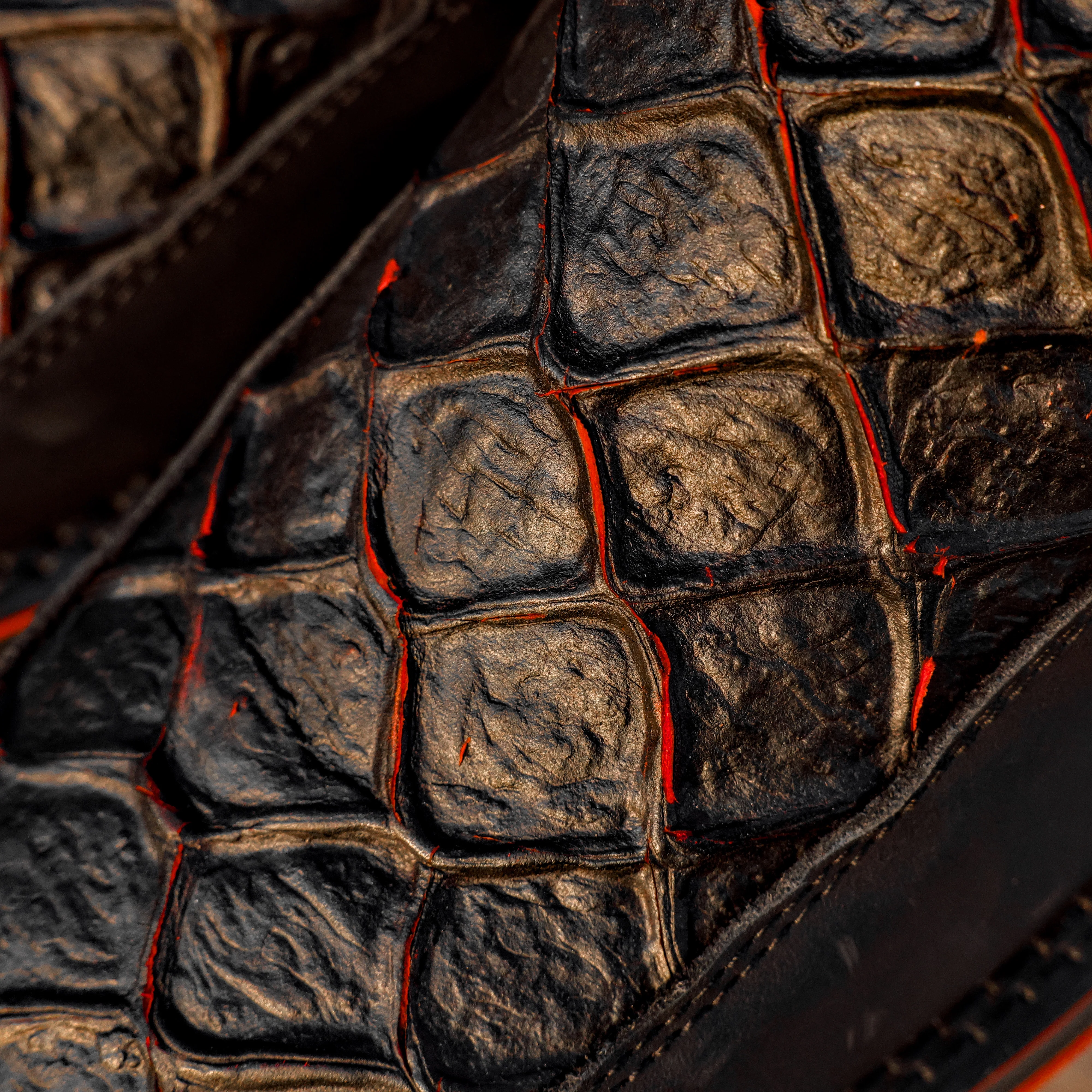 Matte Black Cherry Pirarucu Leather Botin With 3D Lightweight Soles - Square Toe