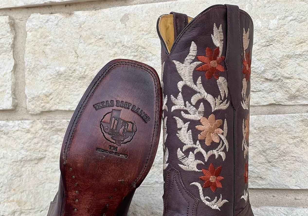 -70%Women’s Chocolate Brown Leather Boots With Floral Shaft- Rodeo Toe—
